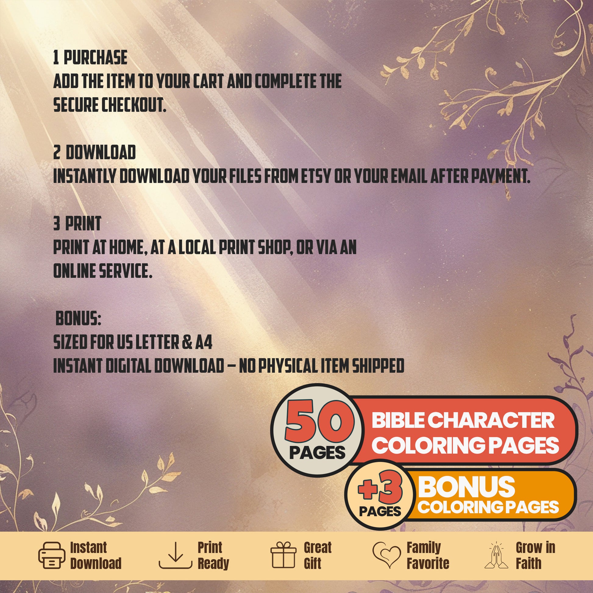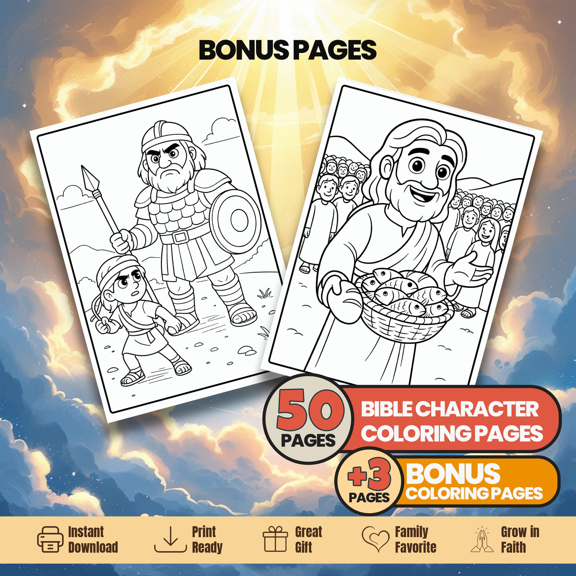 Make Bible learning fun and creative with this beautifully illustrated Bible Character Coloring Book!
