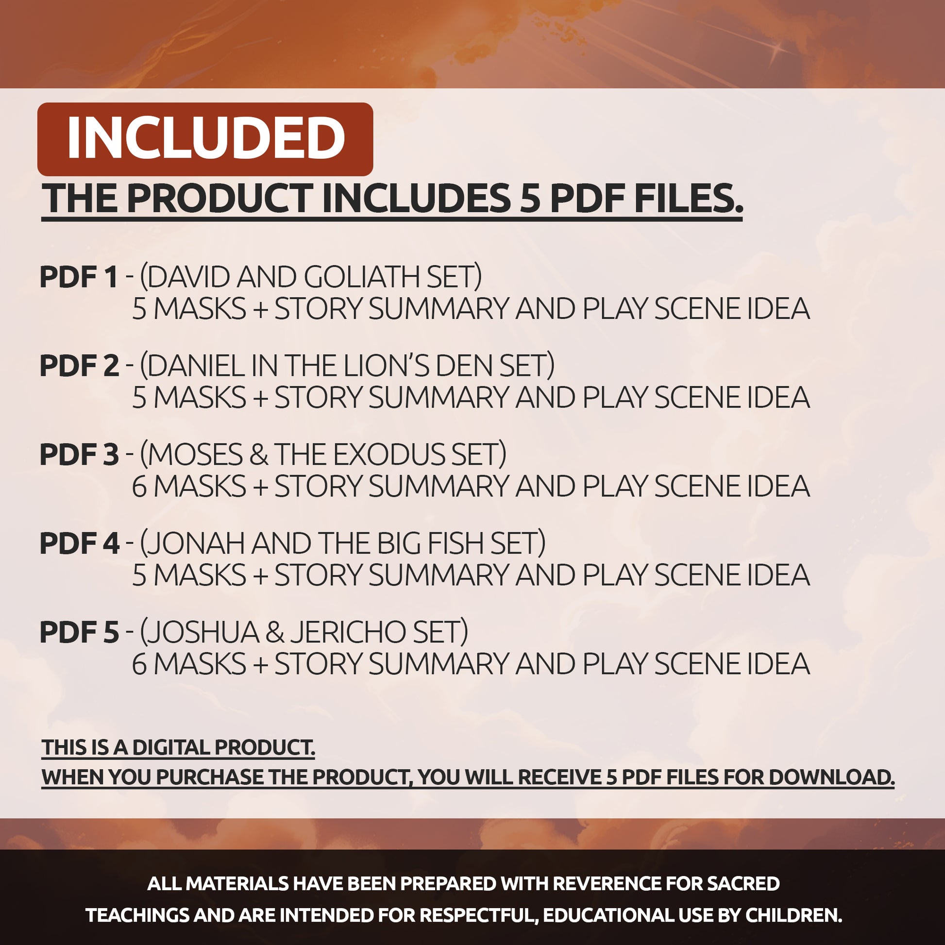 This product is created with deep respect for religious values. It is designed solely to help children engage with Bible stories through imaginative, faith-filled play.